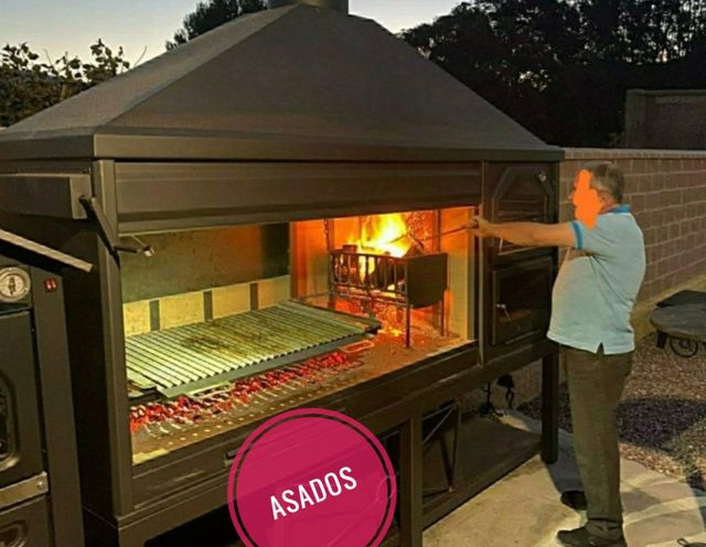 Barbecue con forno in pietra metallica