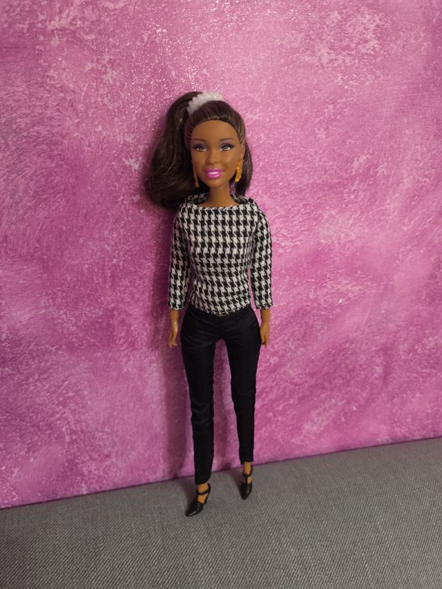 Barbie afro nuova come da foto testa Mattel corpo simil Barbie vestiti nuovi