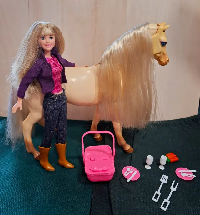 Dettagli del prodottoSet Barbie Hannah Montana con il cavallo Nibbles. Include accessori per un pic nic