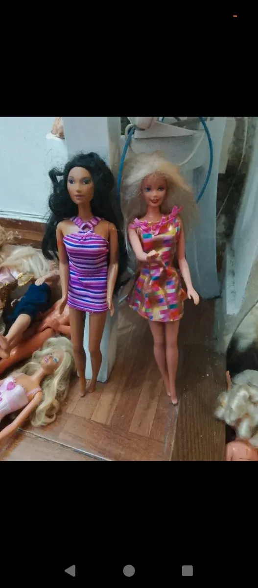 - Un'altra bambola con capelli biondi e vestito colorato.