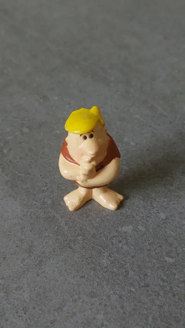 Personaggio di Barney dei Flintstones, edizione Parmalat del 1999. - Personaggio in plastica. - Colore giallo e marrone.