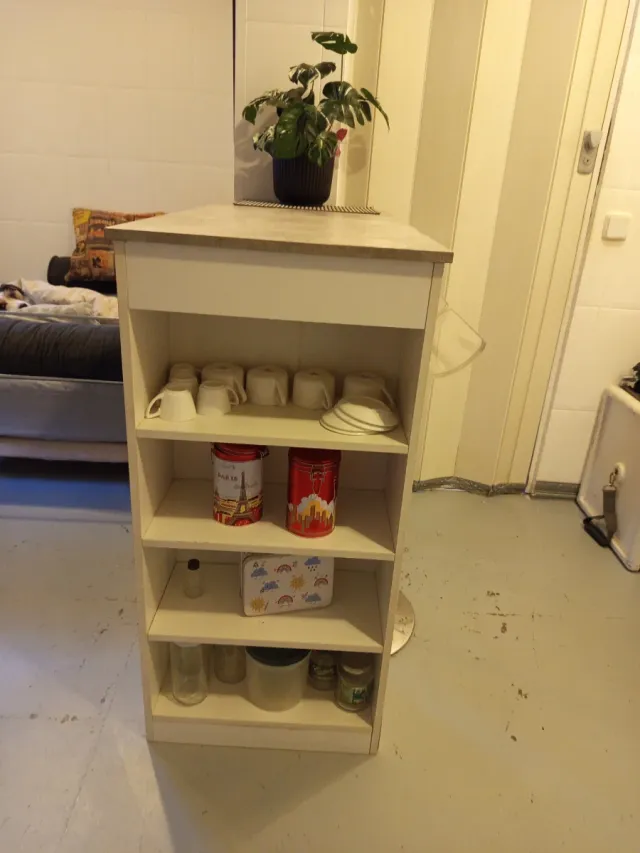 Dettagli del prodottoBancone da cucina con sgabelli.
