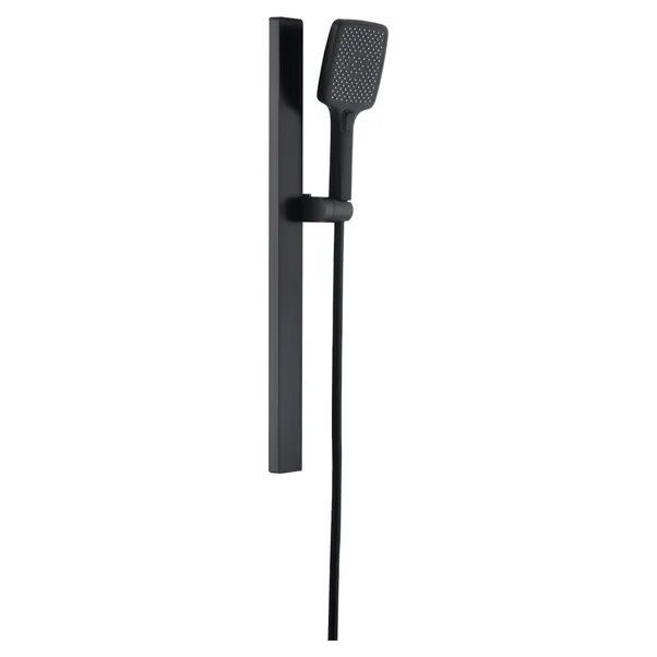 Dettagli del prodottoSaliscendi doccia Acquapro Babelle, 3 getti, finitura nera. Asta in alluminio da 65 cm con interasse fisso 63 cm. Supporto scorrevole in ABS regolabile, doccetta 3 funzioni in ABS, flessibile in PVC nero antitorsione L 1500 mm.