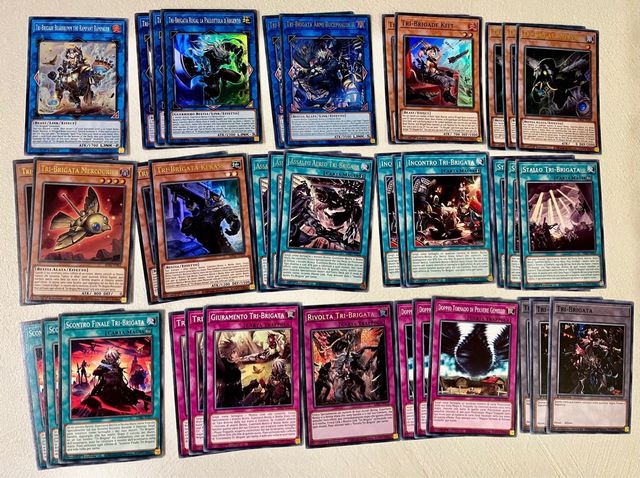 Dettagli del prodottoSet completo di carte Yu-Gi-Oh! del mazzo Tri-Brigada.