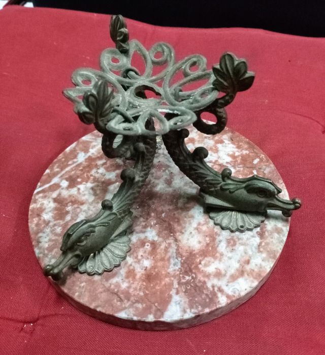 Base in marmo rosa ed ottone diametro cm 15 vintage Alto cm. 11