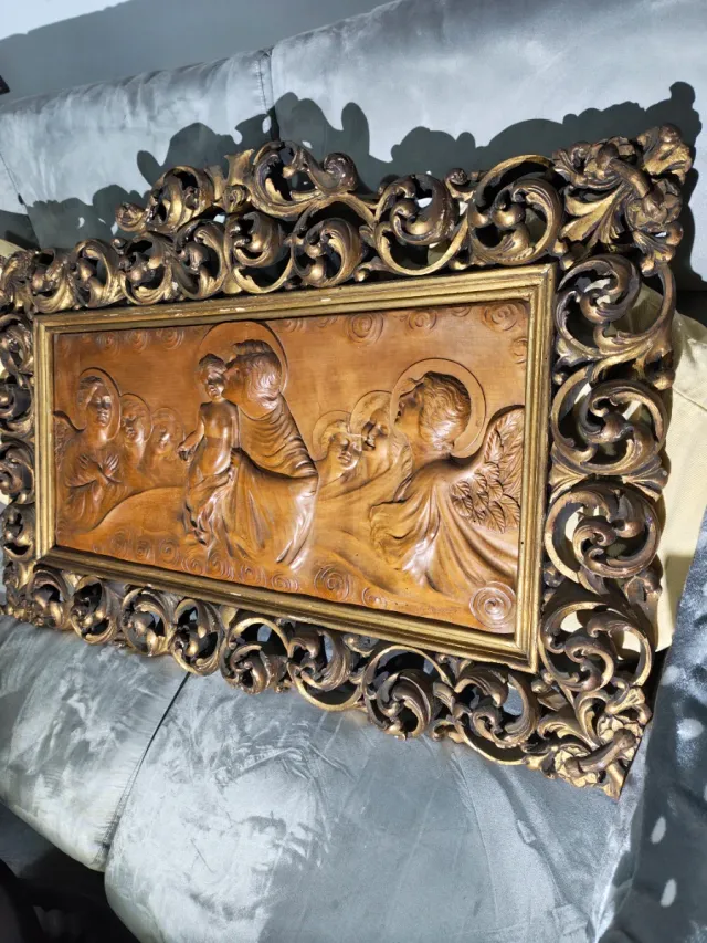 Bassorilievo in noce con cornice dorata Firmato Ma