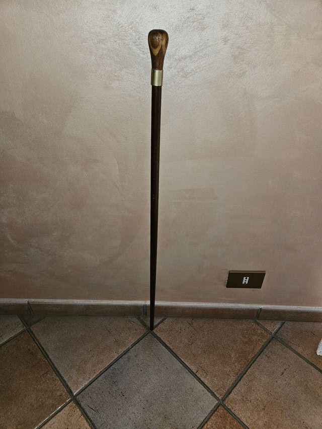 Dettagli del prodottoElegante bastone da passeggio antico con un particolare pomolo in legno. Un pezzo unico con un design classico.