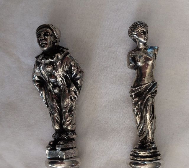 Dettagli del prodotto6 eleganti bastoni da passeggio/collezione con impugnatura in peltro raffigurante la Venere di Milo, la maschera Pierrot, cerbiatto, marmotta, cavallo e scoiattolo.