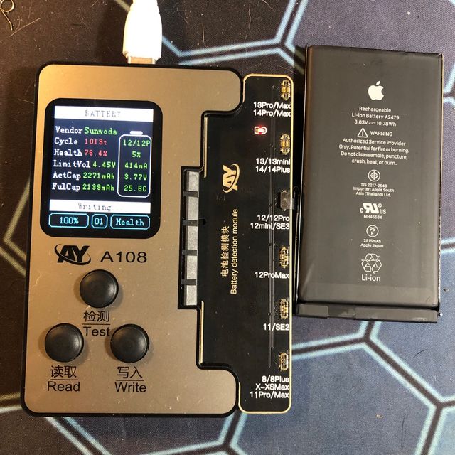 Dettagli del prodottoBatteria di ricambio per iPhone 12 o 12 Pro. Capacità: 2139 mAh. Salute: 76,4%. Ciclos: 1019. Funziona perfettamente ed è originale di un iPhone 12. La descrizione è stata tradotta automaticamente.