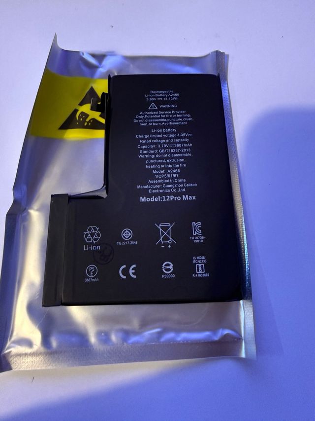 Dettagli del prodottoBatteria ricaricabile Li-ion per iPhone 12 Pro Max. - Modello: A2466 - Capacità: 3687mAh - Voltaggio: 3.83V Completamente nuova nella sua confezione originale di alta qualità La descrizione è stata tradotta automaticamente.