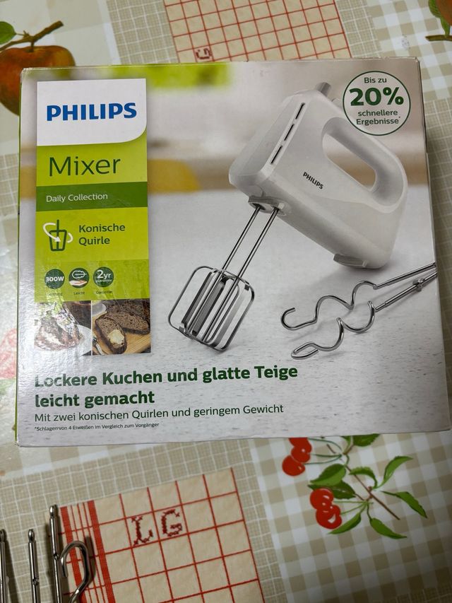 Dettagli del prodottoFrullatore a immersione Philips Daily Collection, ideale per preparare torte e impasti. - Potenza di 300W. - Include due fruste coniche. - Design leggero. La descrizione è stata tradotta automaticamente.