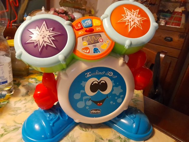 Dettagli del prodottoBatteria elettronica Chicco per bambini, quasi mai usata, è pari al nuovo, funziona tutto pile comprese. Si può usare con le mani o potete prendere 2 bacchette cinesi (non comprese), suona anche da sola.