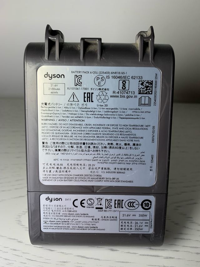 Batteria originale Dyson per aspirapolvere. - Modello: SV11 - Voltaggio: 21.6V - Capacità: 2100mAh / 46Wh - Tipo: Li-ion 20 - Prodotto in Malesia -per V7
