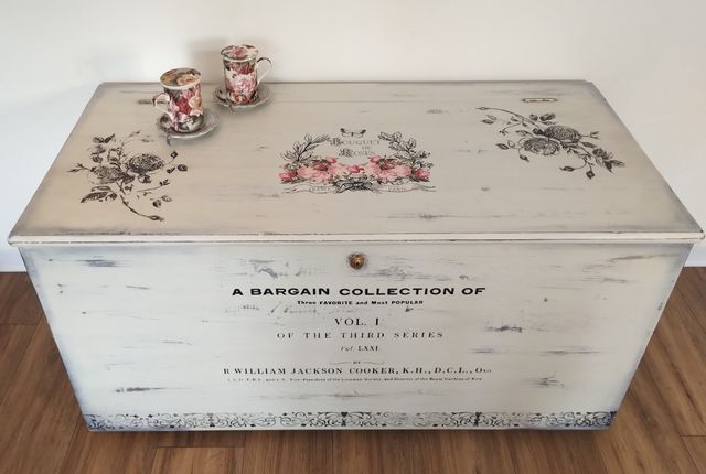 Dettagli del prodottoBaule Cassapanca in legno decorato a mano stile shabby. Molto capiente e bello come arredo.