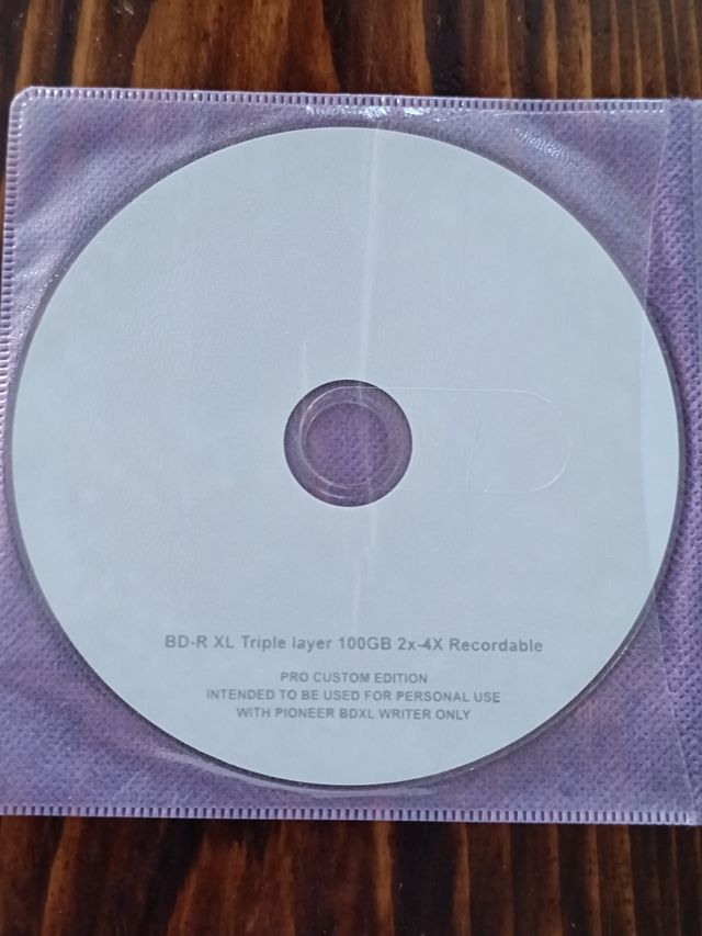 Dettagli del prodottoDisco Blu-ray BD-R XL a triplo strato da 100GB, versione Pro Custom Edition. Adatto per uso personale con masterizzatore Pioneer BDXL. Il disco è nuovo e in perfette condizioni.