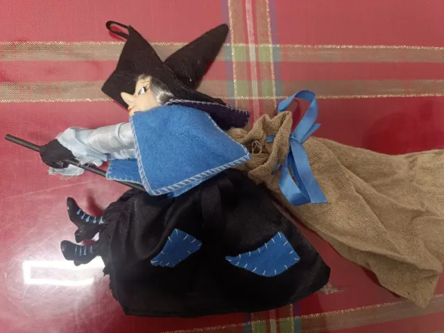 Befana in stoffa con sacco porta dolciumi. - Misure: 35x24 cm. - Marca: Ferrero 2008 - Serie: Fiordinotte n° 009 2008 - Dettagli in feltro blu.