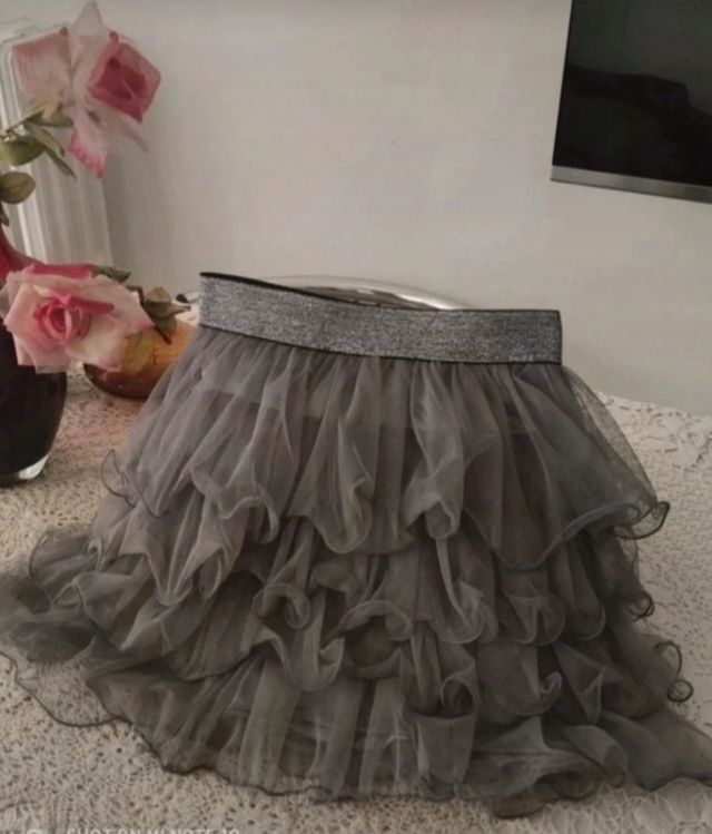 Elegantissima gonna in tulle a quattro balzi foderata, colore grigio , taglia unica.Buona vestibilità