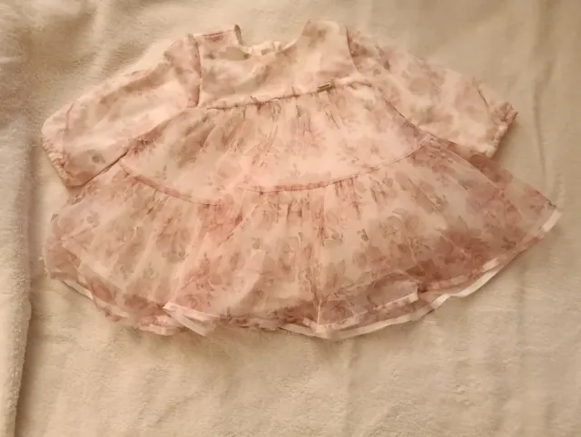 Delicato vestito per bambina con stampa floreale. - Tessuto leggero e trasparente. - Maniche lunghe. - Gonna a balze.