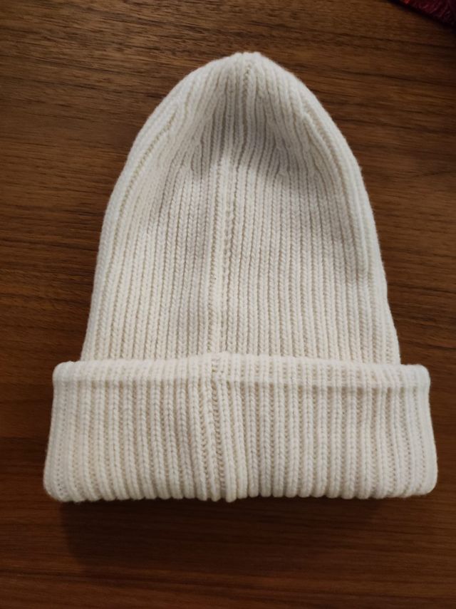 Berretto Moncler unisex, bianco a costine, utilizzato solo una volta durante un evento di moda