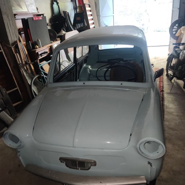 Da montare parabrezza mancante e luci con carrozzeria restaurata . Da riprendere un lato sinistro piccolo danno alla carrozzeria dovuto al cambio delle gomme nuove . Tappezzeria restaurata da montare . Fari e luci posizione da montare, dispongo di diversi pezzi conservati.