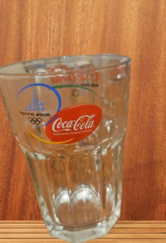 Dettagli del prodottoBicchiere in vetro a tema Coca-Cola, partner delle Olimpiadi Invernali di Torino 2006.