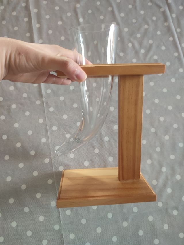 Dettagli del prodottoBicchiere drinkstuff da birra a forma di corno in vetro, con supporto in legno. Altezza del bicchiere nel supporto circa 30 cm. Nuovo. Prezzo su Amazon 28€. Misure del prodotto