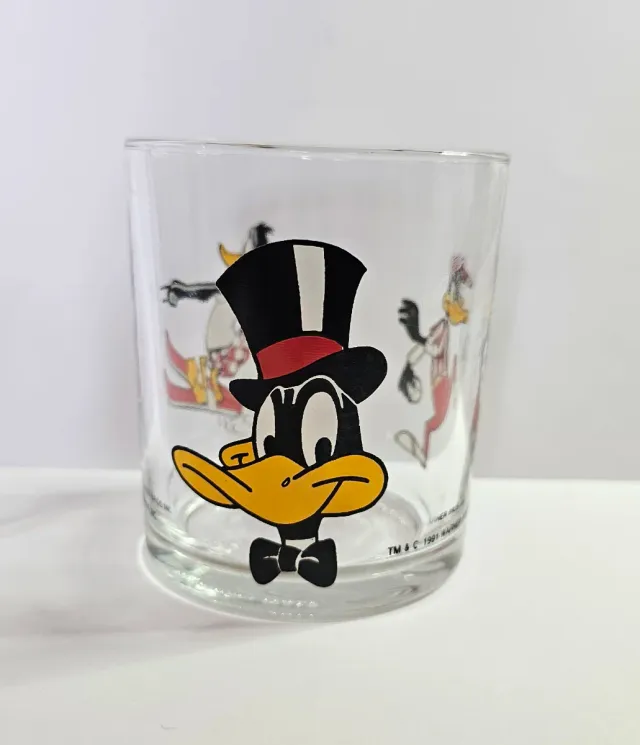 Dettagli del prodottoBicchiere Nutella vuoto con personaggio Duffy Duck dei Looney Tunes. L'anno di produzione è il 1988.
