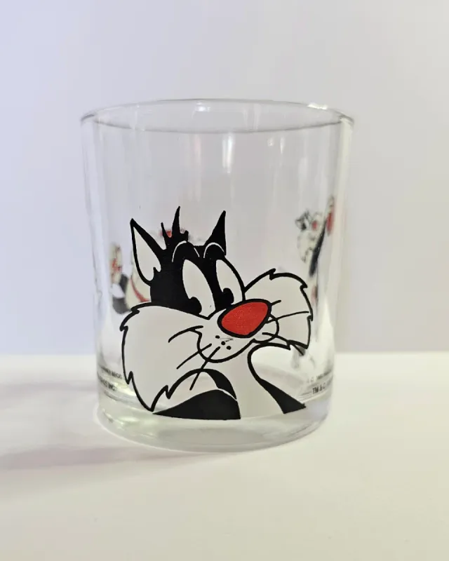 Dettagli del prodottoBicchiere da collezione Nutella del 1991 con il personaggio Gatto Silvestro.