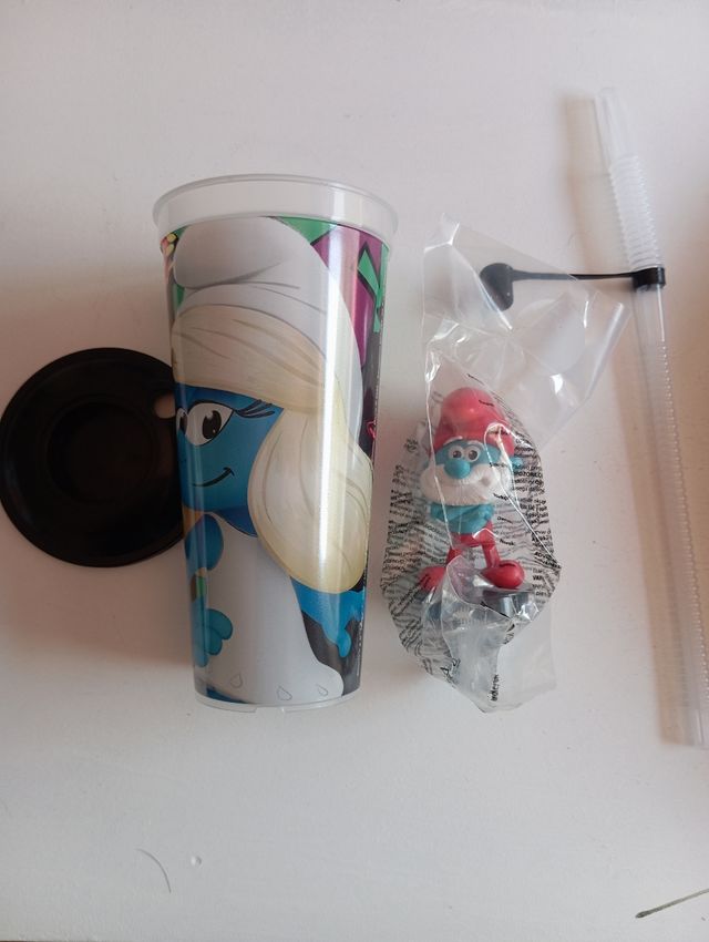 Bicchiere con personaggio dei Puffi. - Personaggio dei Puffi incluso. - Bicchiere con grafica a tema.