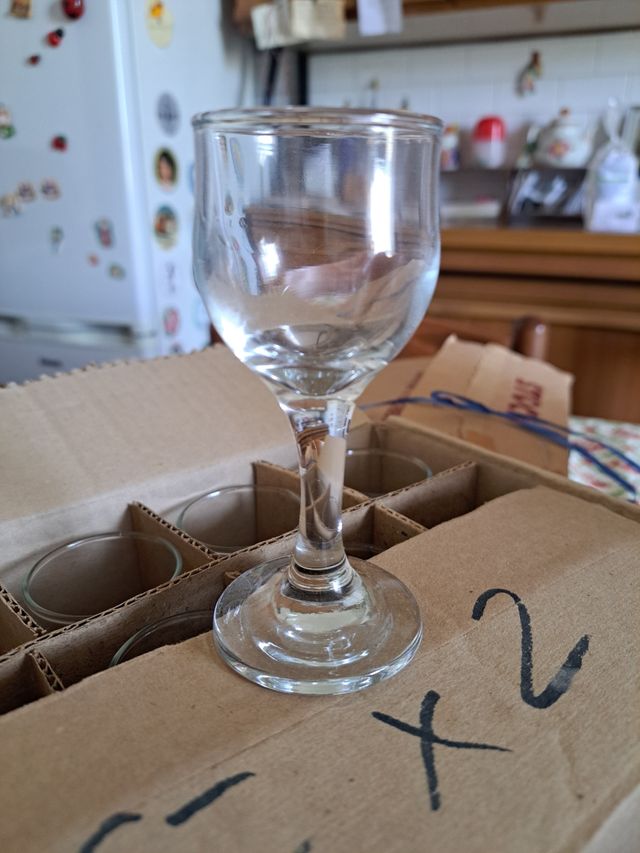 Dettagli del prodottoVendo 12 bicchieri in vetro da liquore, perfetti, mai usati. Altezza 11 cm, diametro 15 cm Misure del prodotto