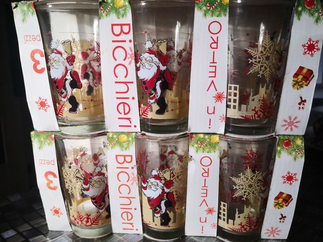 Vendo set da 15 bicchieri in vetro con rappresentazioni Natalizie. Nuovissimi mai utilizzati, vendo nella loro confezione originale. 1 euro cadauno