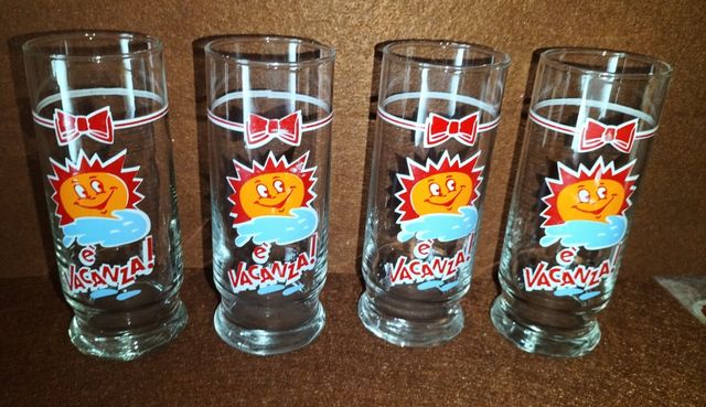 Nr. 4 bicchieri in vetro con logo riguardante le vacanze. Condizioni oggetti come da fotografie allegate.