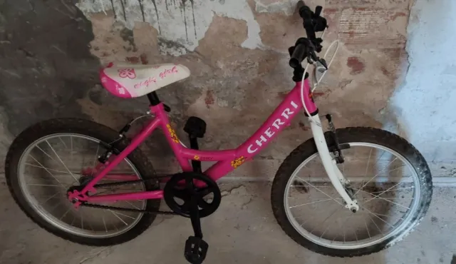 Dettagli del prodottoBicicletta da bambina rosa marca CHERRI, ideale per le prime pedalate.