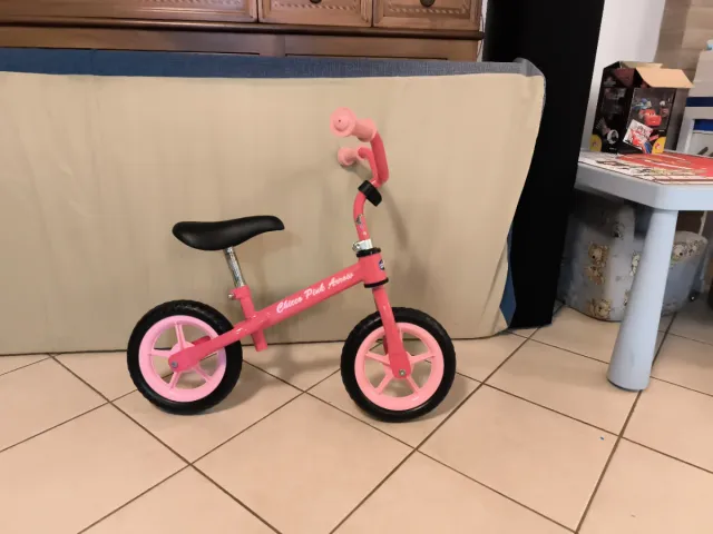 Dettagli del prodottoBicicletta senza pedali per bambina, ideale per imparare l'equilibrio.