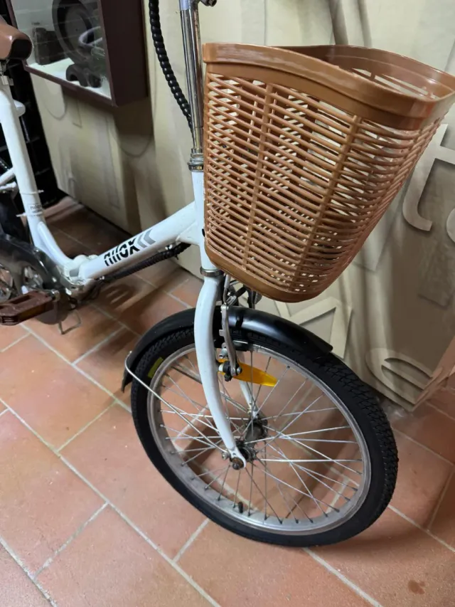 telaio ripiegabile, cesto anteriore e porta pacchi posteriore, con ruote da 20", luci LED e sella ergonomica ECOLOGICA: ottima per l'utilizzo quotidiano, ricaricabile da corrente elettrica in 4 ore. Gomme nuove, appena sostituite.