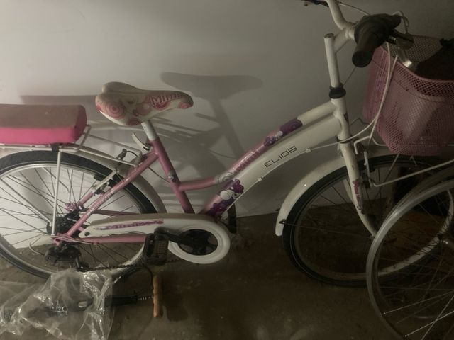Vendo bicicletta Elios per ragazza, misura 24 pollici. È bianca e rosa, con un cestello rosa.Pronta per essere usata.