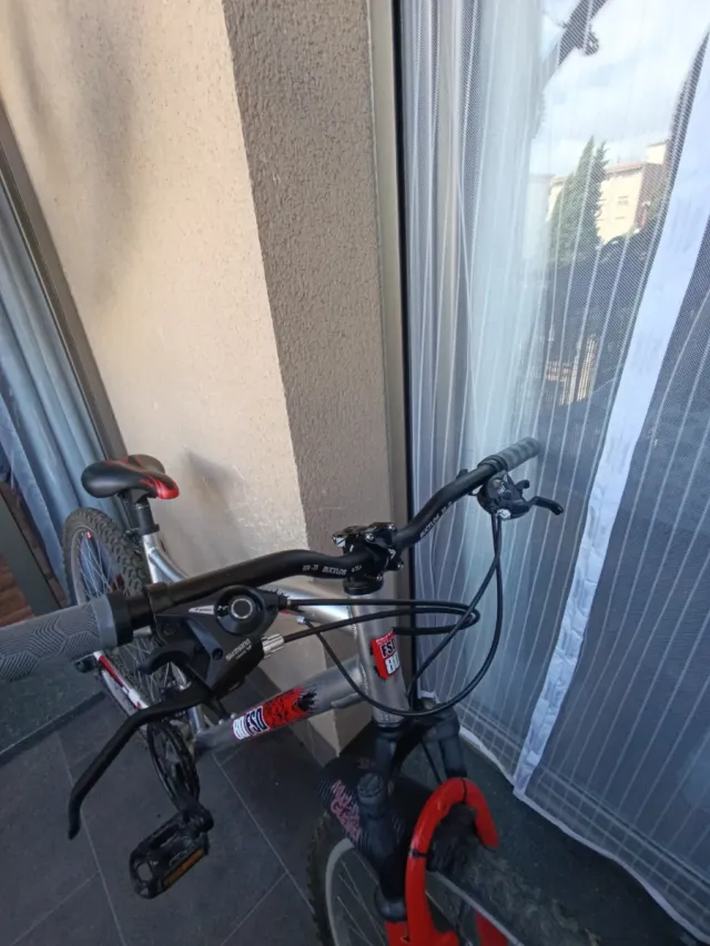 Dettagli del prodottoBicicletta enduro con telaio in alluminio e forcella anteriore. Manubrio largo per un maggiore controllo. Freni a disco. Pedali piattaforma. La descrizione è stata tradotta automaticamente.