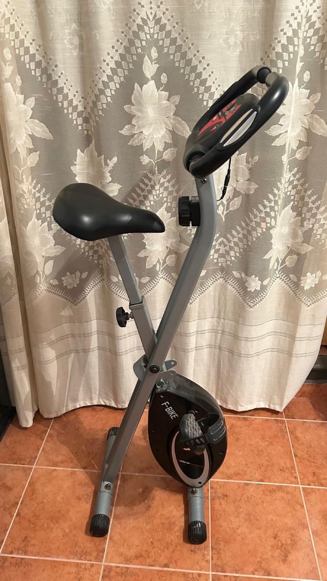 Dettagli del prodottoBicicletta statica pieghevole, ideale per allenarsi a casa. Il suo design compatto permette di riporla facilmente. - Struttura metallica grigia. - Sedile nero imbottito. - Manubrio con impugnature nere. - Pedali con cinture. La descrizione è stata tradotta automaticamente.