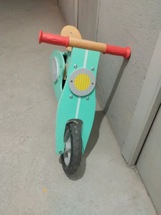 Dettagli del prodottoBici moto in legno senza pedali, ideale per i più piccoli. Design tipo moto, ruote di gomma, manubri in gomma rossi, dettagli di cerchi gialli e grigi. La descrizione è stata tradotta automaticamente.