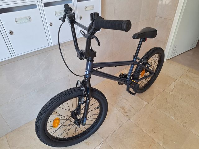 Dettagli del prodottoBicicletta BMX di colore scuro, ideale per trucchi e spostamenti. Telaio resistente. Manubrio BMX. Ruote da 20 pollici. Pedali a piattaforma. La descrizione è stata tradotta automaticamente.