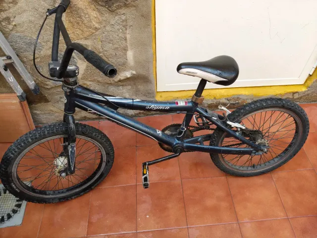 Dettagli del prodottoBicicletta BMX del marchio Stigma in colore blu. Ideale per trucchi e passeggiate. - Telaio in acciaio. - Ruote da 20 pollici. - Manubrio girevole. - Freni V-brake. La descrizione è stata tradotta automaticamente.