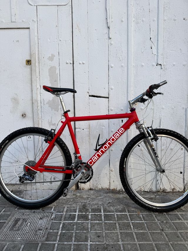 Dettagli del prodottoMountain bike classica Cannondale in rosso.