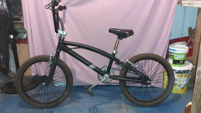 Dettagli del prodottoBicicletta BMX nera. - Telaio BMX. - Ruote BMX. - Sella BMX. Cavi dei freni appena sostituiti, perfettamente tensionati, peso ridotto. La descrizione è stata tradotta automaticamente.