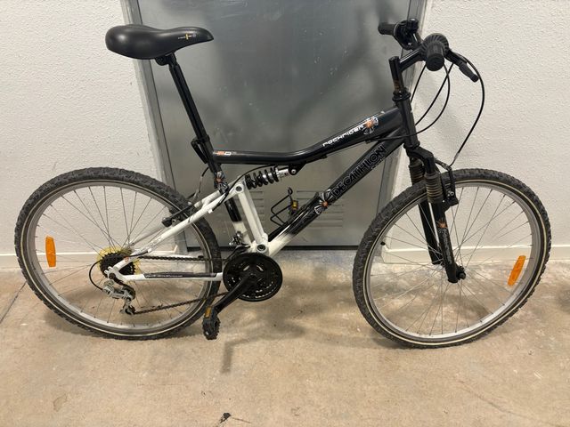 Dettagli del prodottoBicicletta da montagna Decathlon, modello Pachirider. Ideale per godersi percorsi e strade. - Telaio in alluminio. - Sospensione anteriore e posteriore. - Freni a disco. - Cambio Shimano. La descrizione è stata tradotta automaticamente.