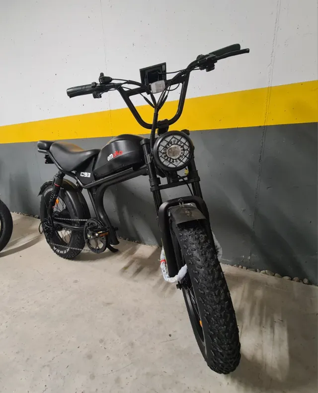 Dettagli del prodottoNuova bicicletta elettrica in stile retrò con un design robusto e accattivante. - Colore nero opaco. - Ruote larghe tipo fat tire. - Sella comoda. - Fanale anteriore rotondo. - Display digitale sul manubrio. La descrizione è stata tradotta automaticamente.