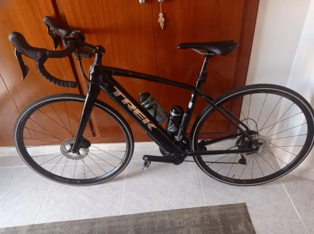 Dettagli del prodottoBicicletta elettrica Trek da 250w in colore nero con caricabatteria. Perfetta, usata pochissimo. Taglia 54. - Telaio in alluminio. - Freni a disco. - Ruote da 700c. In regalo: Pompa per gonfiaggio, sella extra in gel, casco e scarpe con calas taglia 45. La descrizione è stata tradotta automaticamente.