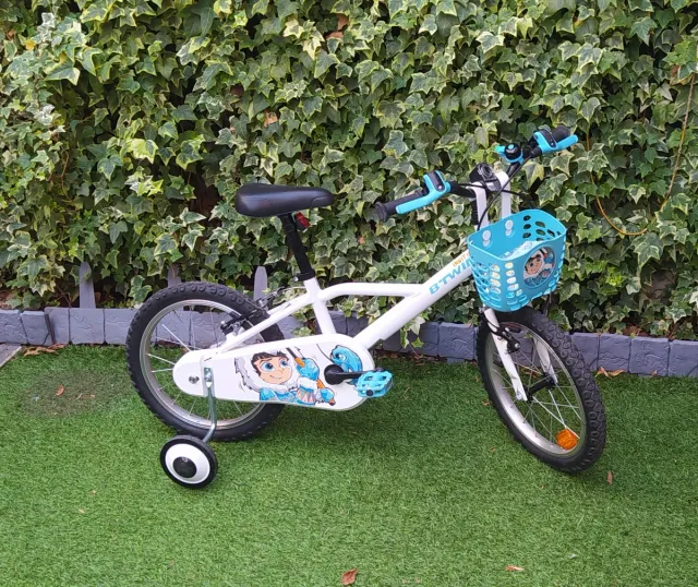 Dettagli del prodottoBicicletta per bambini Btwin in bianco, ideale per i più piccoli. Ha ruote per un facile apprendimento e un design divertente.