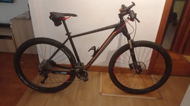 Dettagli del prodottoBicicletta da montagna CUBE in colore nero e arancione. - Telaio in alluminio taglia L - Ruote da 29 pollici. - Freni a disco. - Sospensione anteriore Rockshox Blocco sospensione nel manubrio Cambio di 22 velocità (11 pignoni e 2 piastre) Sella in carbonio Pneumatici Maxxis In ottime condizioni e molto curata La descrizione è stata tradotta automaticamente.