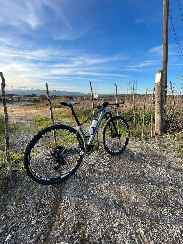 Dettagli del prodottoBicicletta da montagna rigida, montata su misura. Ideale per sentieri e strade. - Telaio in carbonio leggero. - Ruote da 29 pollici. - Freni a disco idraulici. - Trasmissione di alta gamma. La descrizione è stata tradotta automaticamente.