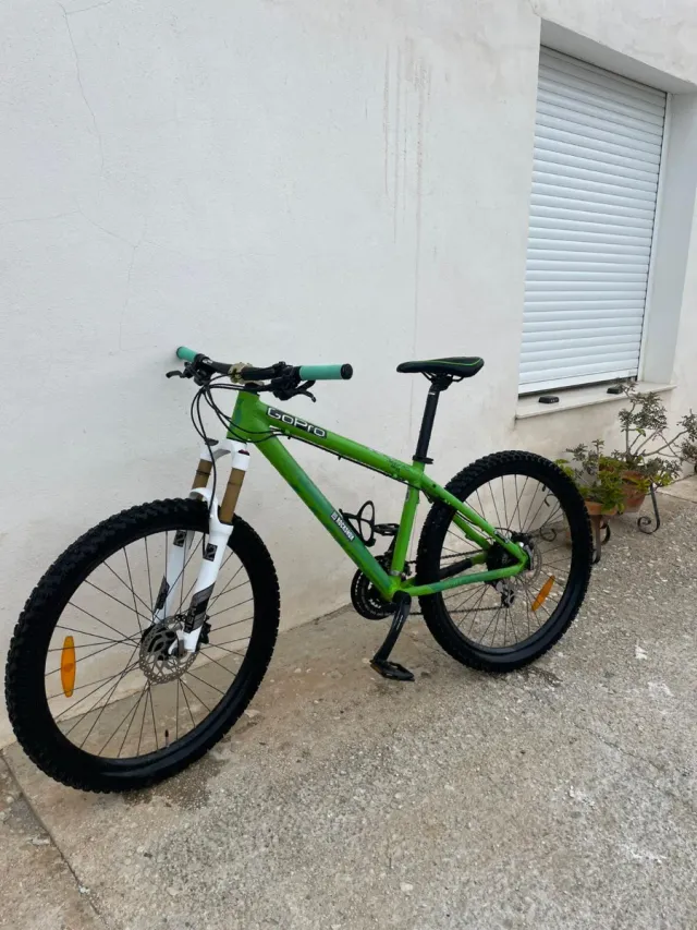 Dettagli del prodottoBicicletta da montagna Scott con ruote da 26 pollici. - Bicicletta recentemente restaurata. - Telaio in alluminio verde taglia S. - Manubrio e manopole color turchese. - Forcella anteriore ad aria con regolazione morbida e dura. - Potenza dorata nuova Lunje TE-CNC. - Cambio Shimano Astus. - Freni idraulici Shimano. - Gomme e camere d'aria nuove appena montate. - Cerchi da 26". La descrizione è stata tradotta automaticamente.